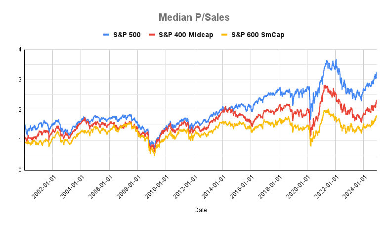 Price/Sales (ttm) shows a similar picture to median P/E.
