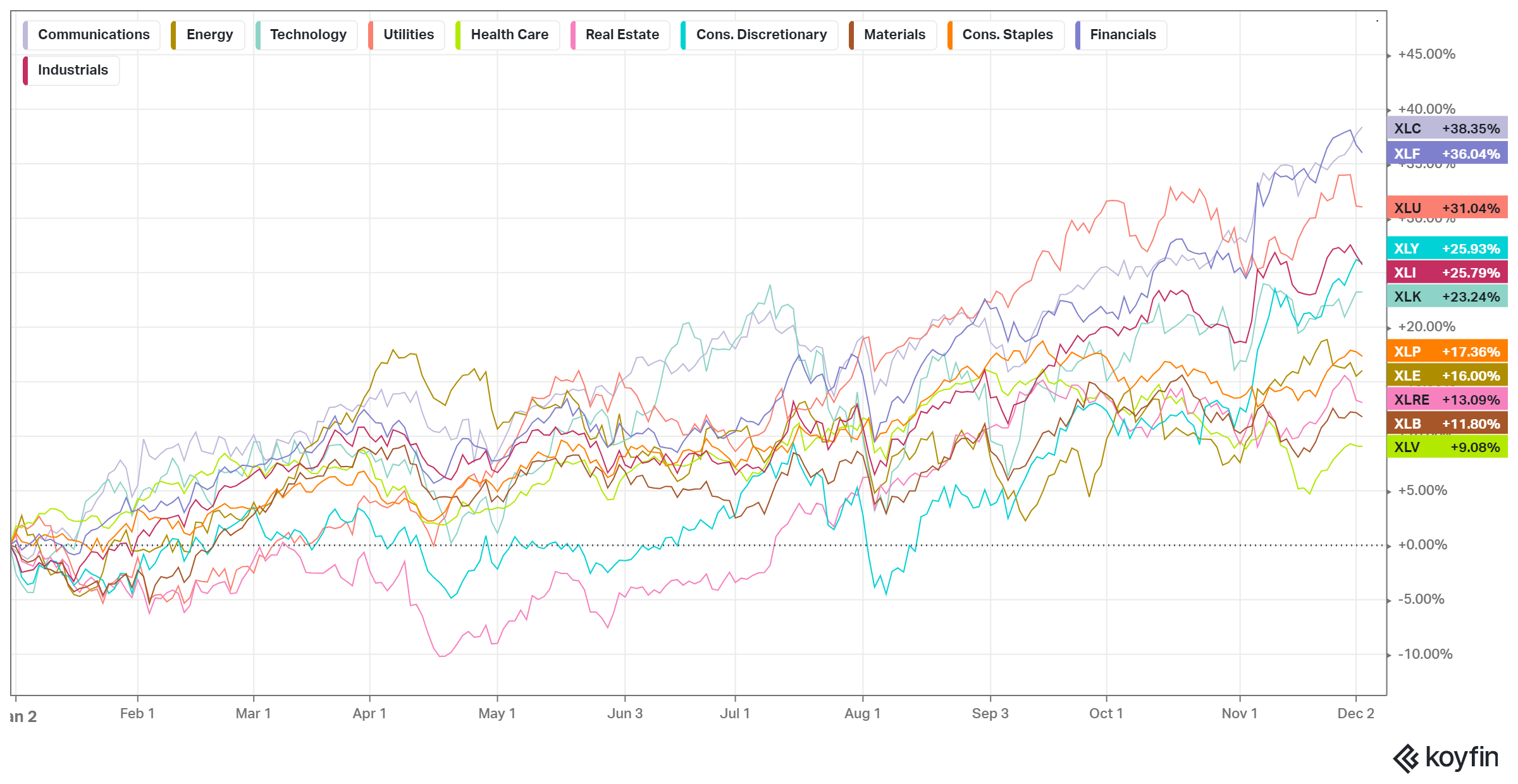 The story of 2024 began with worries about market concentration in the Magnificent Seven only to have the least techy sectors stand out by year’s end.